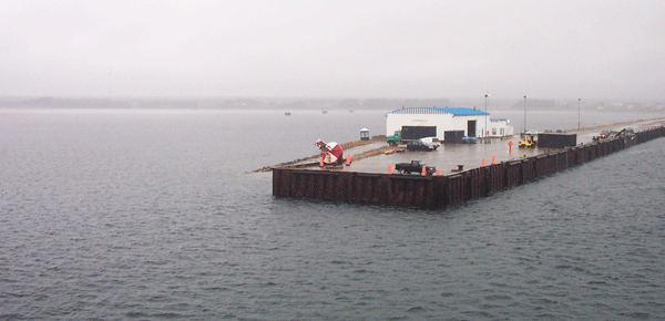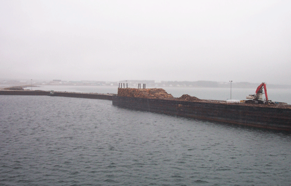 Ce lent cabotage, avec des escales de trois ou quatre heures (le temps de débarquer et d’embarquer passagers et matériel) est propice à la méditation. On y voit la végétation changer. D’abord la forêt et l’industrie du bois à Anticosti, puis la taïga et ses sapins rabougris, et la toundra aux lichens et mousses riches en couleurs tapissant un sol rocheux. Ci-dessous, le Nordik Express embarque sa cargaison sur le port de Rimouski.
